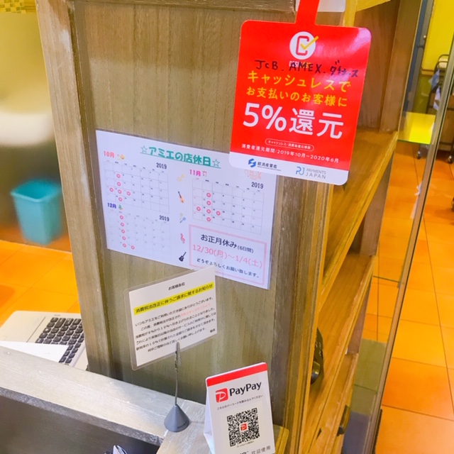 また、10月1日よりJCB、ダイナース、アメックスカードでお支払いのお客様には5%還元をさせて頂けるようになります。どうぞご利用ください☆