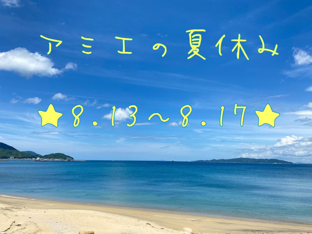いつもアミエをご利用いただき誠にありがとうございます。8月13日(木)~8月17日(月)の5日間を夏季休暇とさせて頂きます。どうぞよろしくお願い致します☆